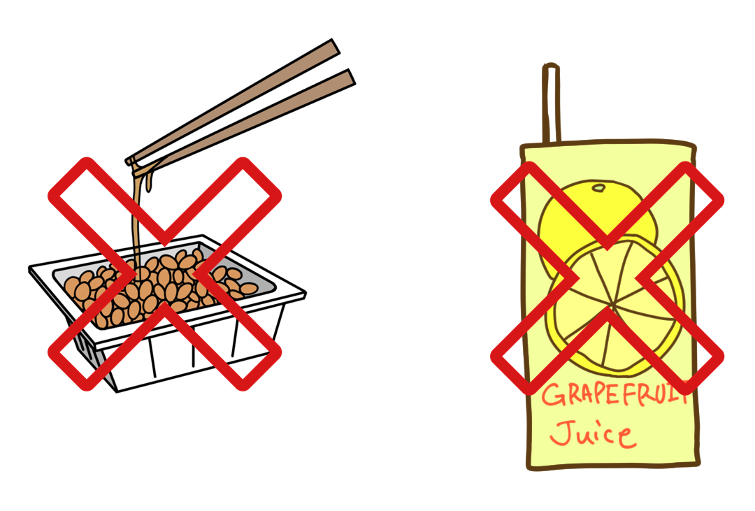 抗凝固剤と納豆、高血圧のくすりの一部とグレープフルーツジュース、などの組み合わせが有名です。